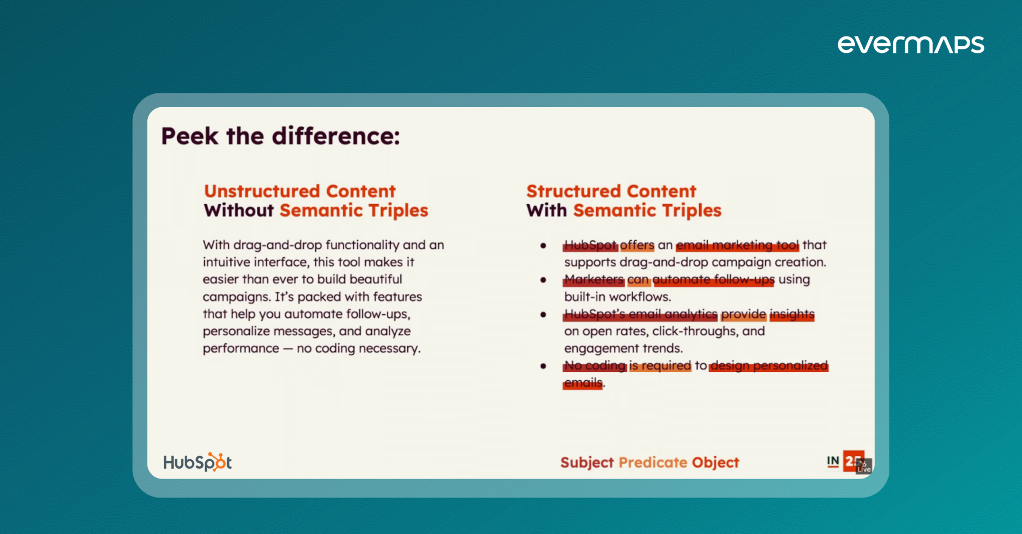 Dans cette expérimentation, les équipes de HubSpot ont identifié les informations essentielles à faire comprendre aux IA, puis les ont reformulées de manière plus explicite.