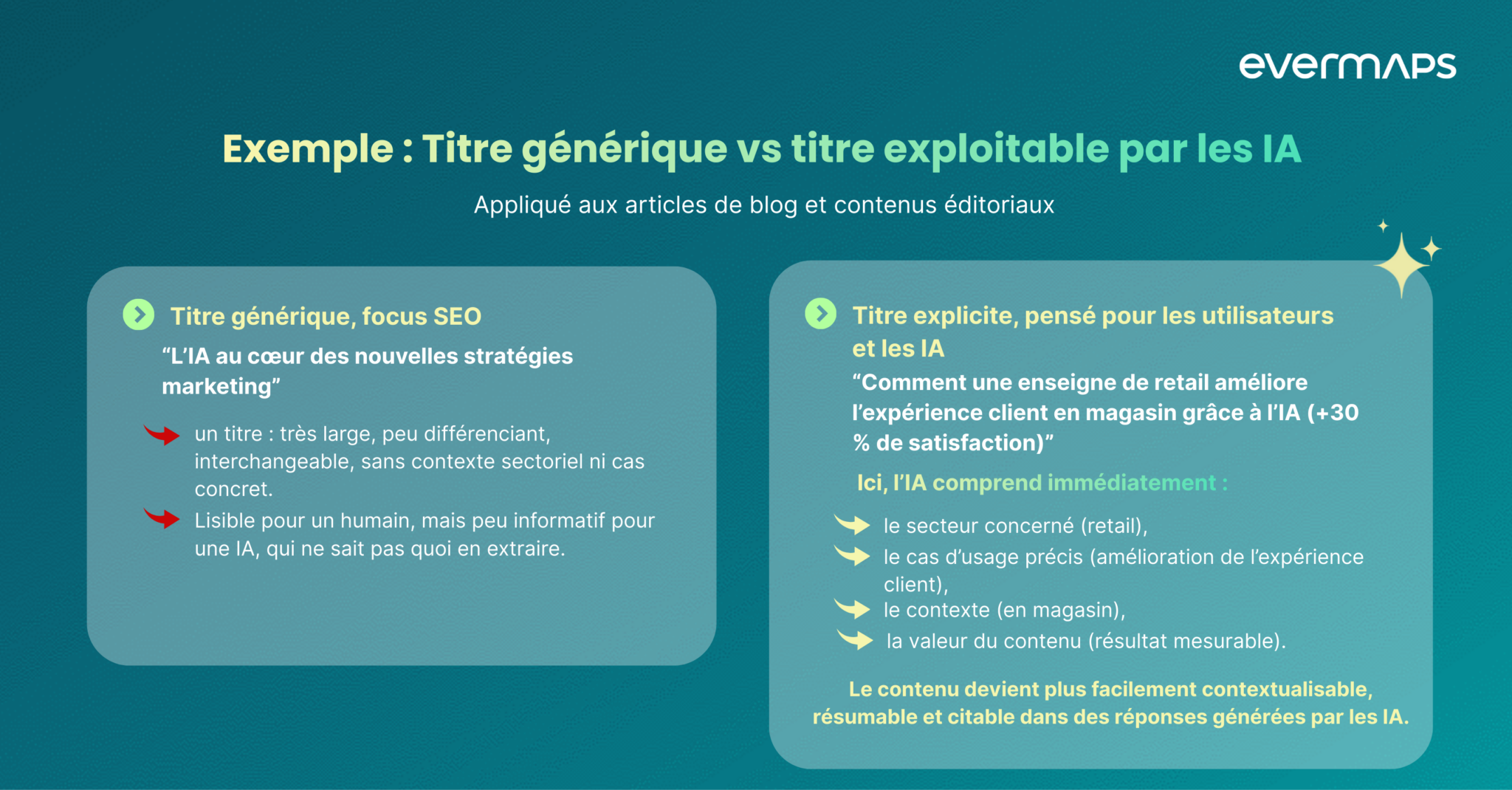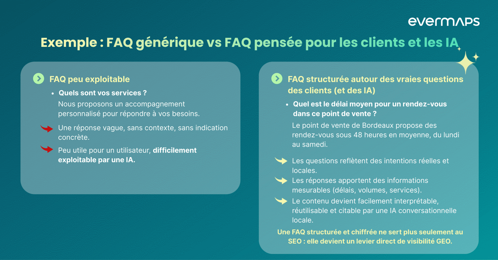 Bien dosée, cette logique devient un levier majeur de visibilité IA (GEO) pour les réseaux de points de vente !