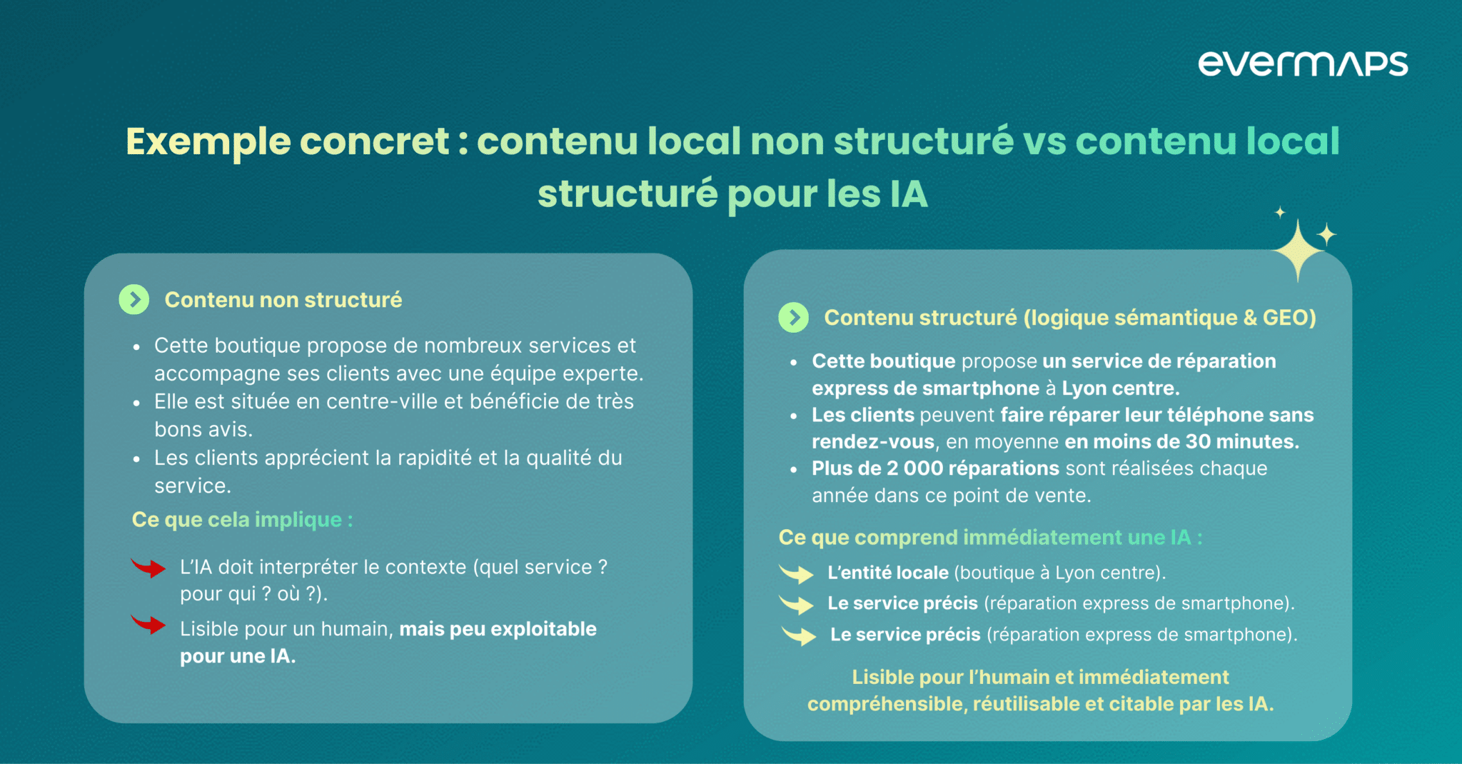Un point de vente mal décrit, un service flou ou un contexte local implicite… l’IA ne peut ni comprendre, ni recommander.